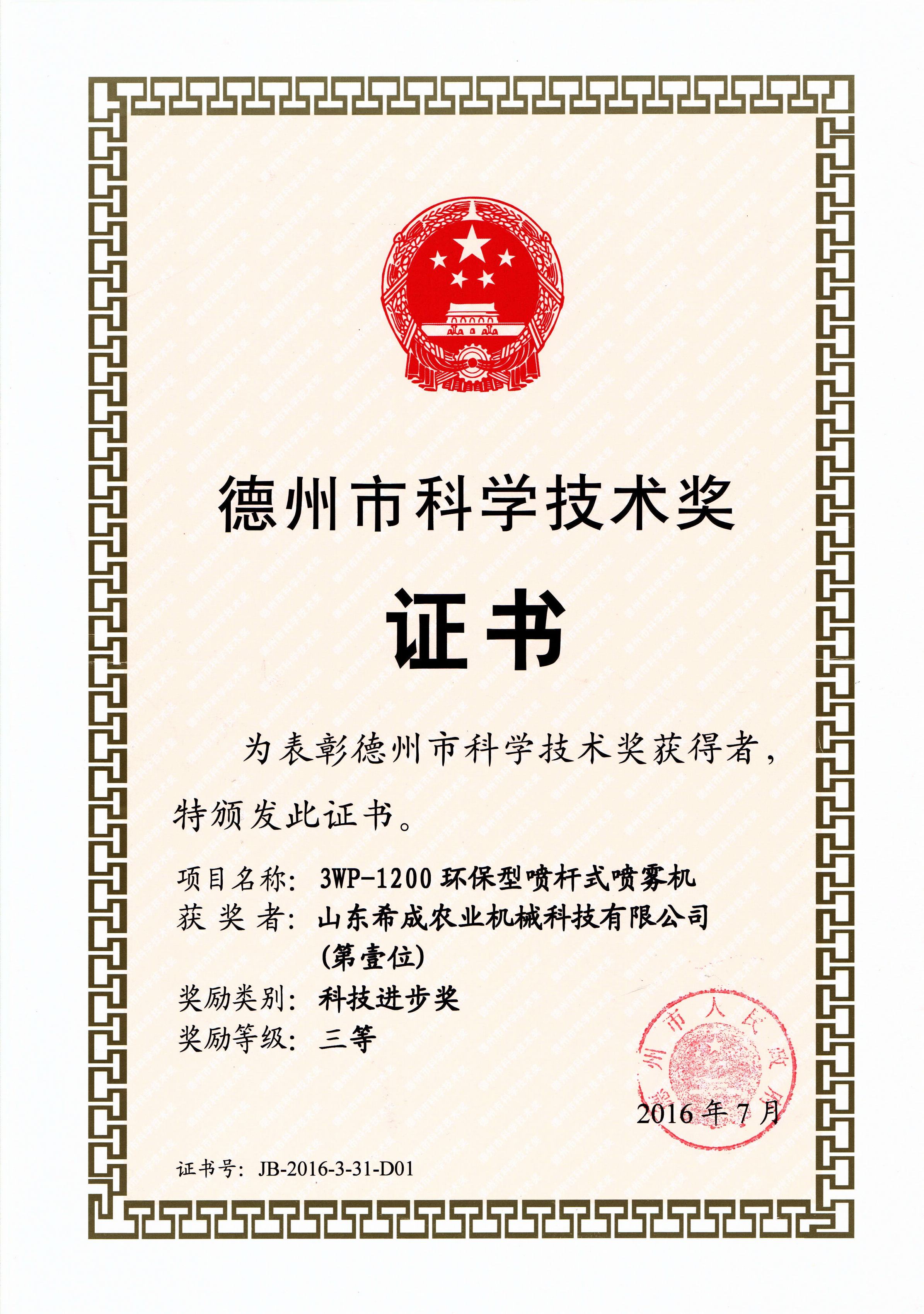 • In 2014, the research and development of the 2CM-4 potato planter won the city science and technology progress second prize;