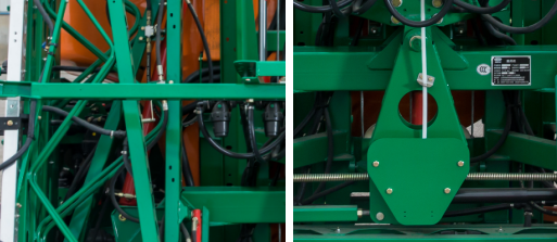 噴桿:噴桿經由進程起落架吊掛于機架上,共有九節構成,用于牢固噴頭體。擺布各四節,運輸或地頭轉彎時,其向后折疊后,牢固于機架上;噴霧功課時,舒展后,起落至恰當高度停止任務。